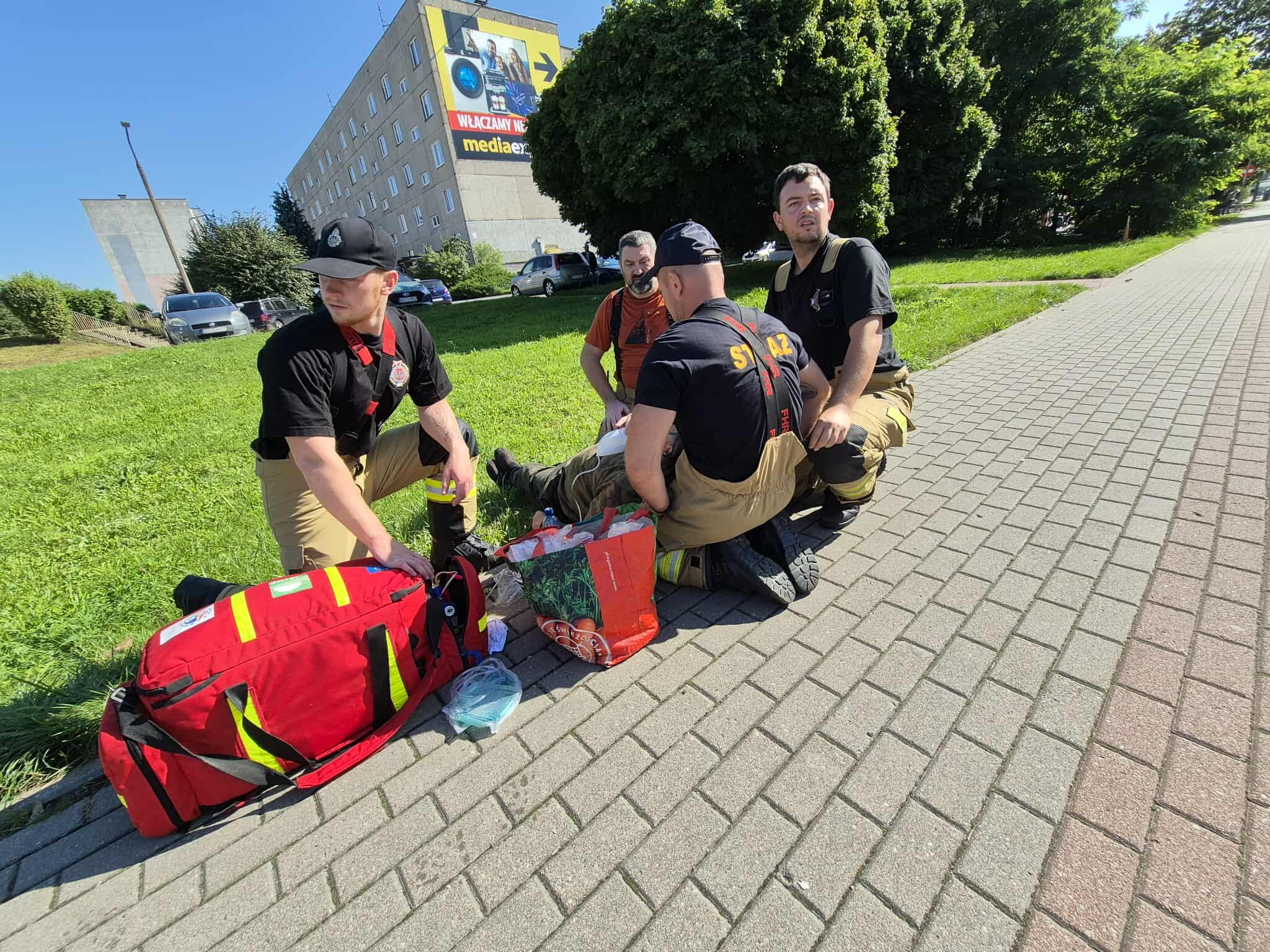 "Nasi druhowie zauważyli mężczyznę w pozycji półleżącej na chodniku w samym centrum Ostródy. Sytuacja wyglądała na poważną, dlatego nie wahaliśmy się ani chwili. Po szybkim rozpoznaniu okazało się, że pan potrzebuje pomocy medycznej. Nasi ratownicy rozpoczęli działania – podaliśmy tlen, zapewniliśmy wsparcie psychiczne i pozostaliśmy z poszkodowanym do czasu przyjazdu zespołu ratownictwa medycznego oraz kolegów z JRG Ostróda" — relacjonuje OSP Ostróda.
