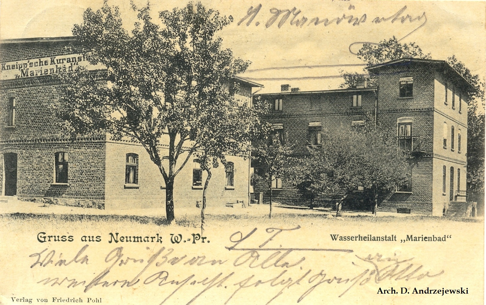 Nosił on nazwę „Kneipp’she Kuranstalt „Marienbad”, inaczej Wasserheilanstalt „Marienbad”, czyli Zakład Wodoleczniczy „Marienbad”. Przedstawia go między innymi XIX-wieczna pocztówka litograficzna z tego okresu, wydana przez nowomiejskiego wydawcę i drukarza J. Koepke. Nowomiejski „Marienbad” mieścił się w pobliżu Drwęcy przy Lindenstrasse, czyli dzisiejszej ul. Działyńskich.